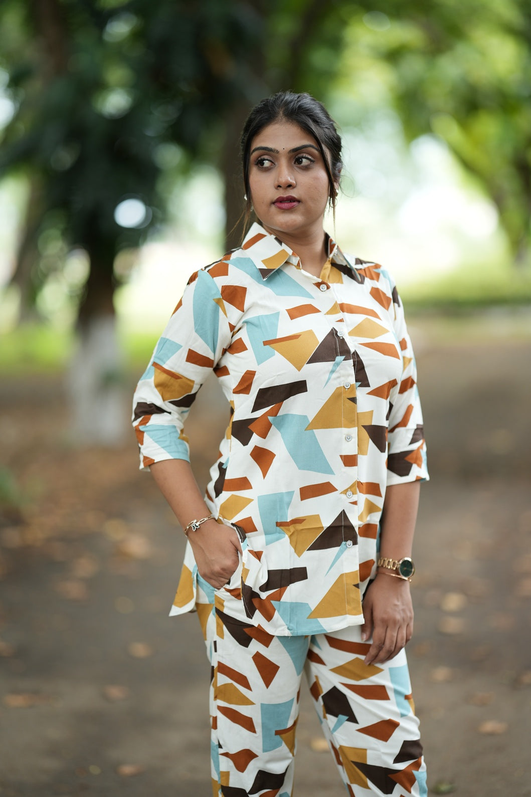 This chic two-piece set includes a printed 3/4th sleeve top and comfy pants, designed for all-day ease. With an elastic waistband and handy side pockets, it’s perfect for lounging at home or stepping out in relaxed style.